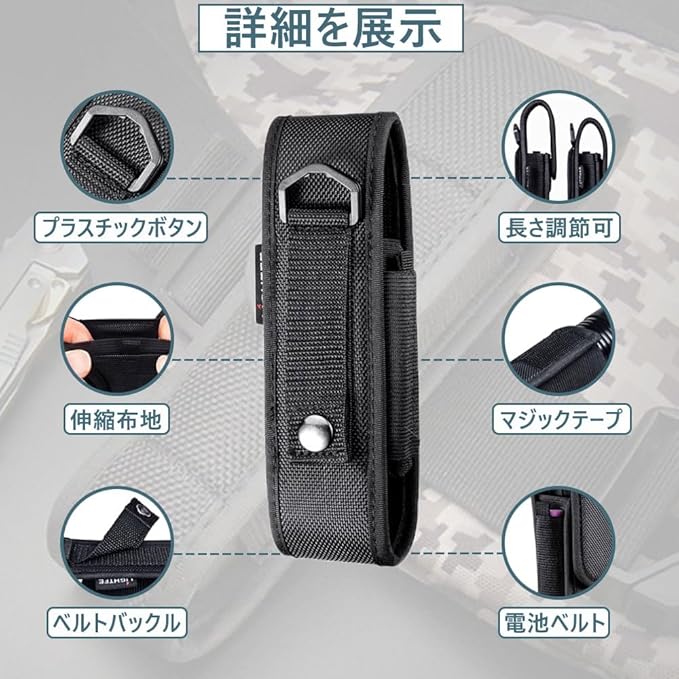 【製品の利点】 丈夫で耐久性があり、磨耗や汚れに強いです。 腰に取り付けることで、必要なツールがすぐに手に入り、アウトドア活動をスムーズにサポートします。