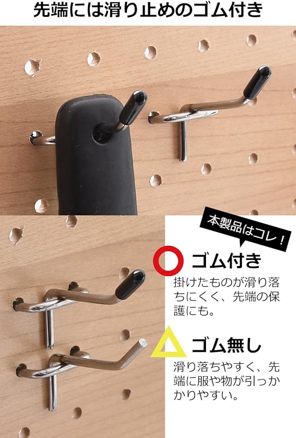 【先端用ゴム付属】先端に取り付ける黒色のゴム製キャップが付属しております。吊るした物の落下防止、物や利用者が傷付くのを防ぐのにご使用ください。
