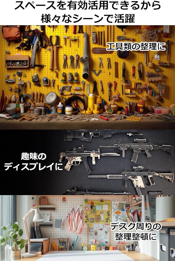 【用途は様々】アクセサリーや車のキー等の小物、バッグや帽子などの日常使いから、工具や調理器具などの仕事用としても。商品棚の陳列や商品のディスプレイとしてもご使用いただけます。
