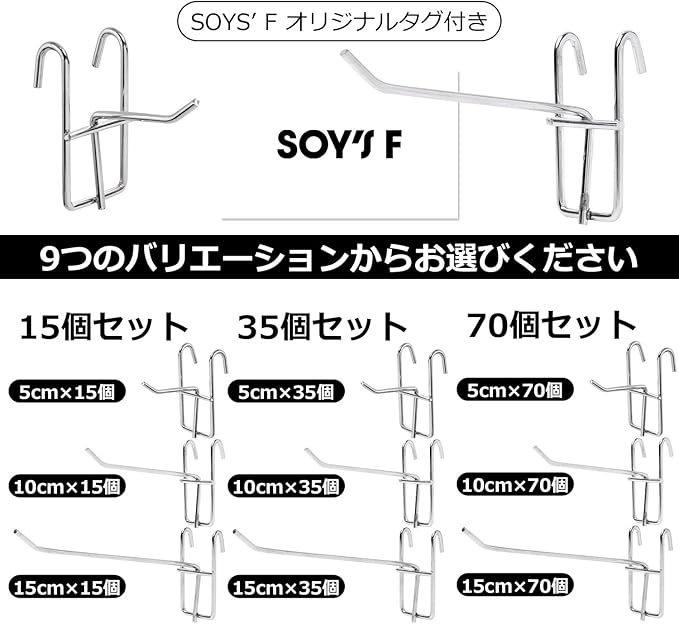 メッシュパネル フック ネットフック 「9つのバリエーションからお選びください (5cm.10cm.15cm。15個.35個.70個)」 ワイヤーネット ラックフック メタルラック メッシュラック パネルラック (陳列 展示 収納に)【SOY’S F】 (150mm、15個) | etshop