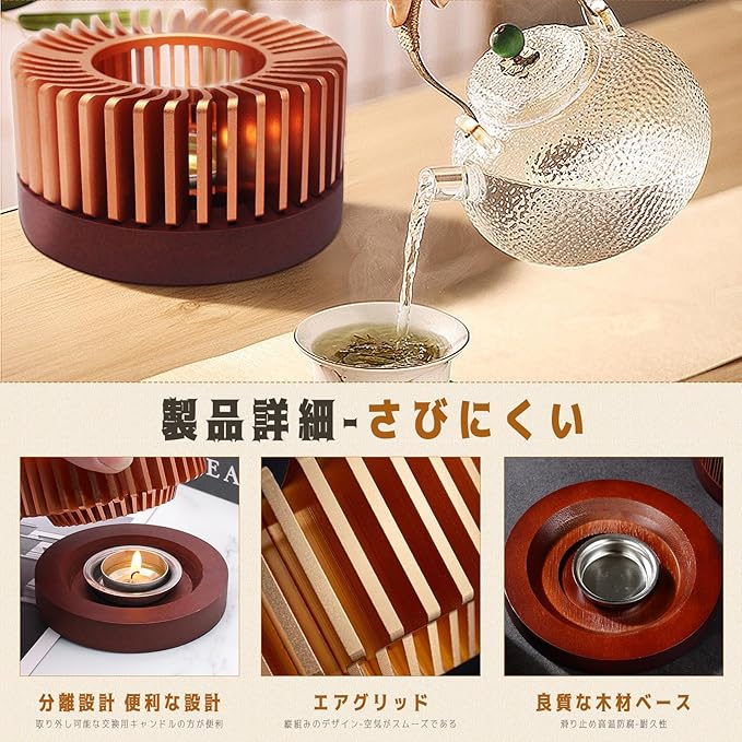 【ティーウォーマーの用途】ろうそくの炎で急須を温めることで、お茶を長時間保温。このティーォーマーは加熱が均一で、お茶の栄養価を損なうことなく適温を保ち、冷めたお茶を飲む心配がありません。