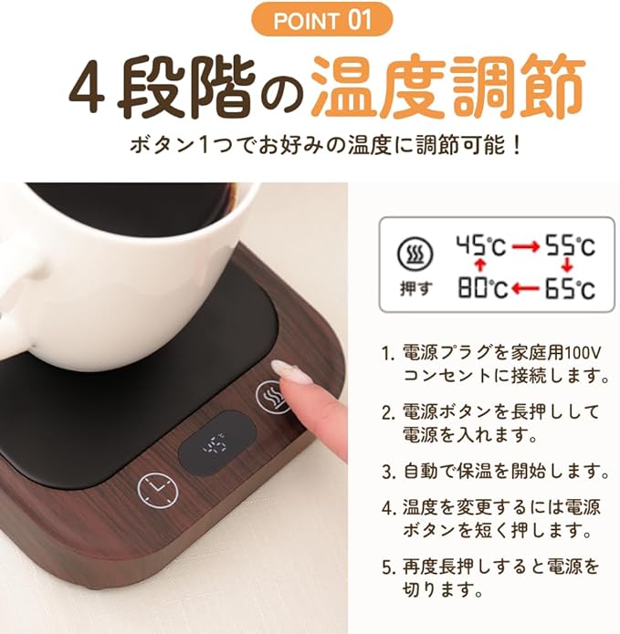 【4段階温度調節】50℃〜80℃まで、好みに応じた細やかな設定が可能