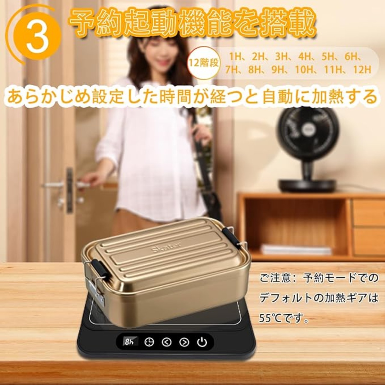 【多機能&安全設計】1〜12時間タイマー機能、自動OFF機能(6時間連続使用時)、予約加熱モード(デフォルト55℃)を搭載。安心して毎日ご利用いただけるカップウォーマーです。