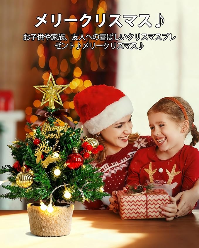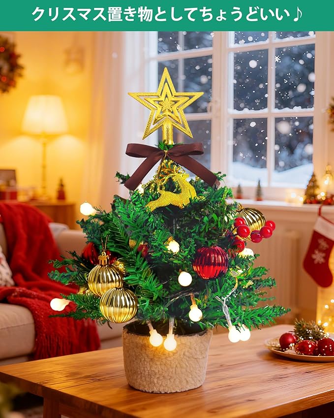 【豪華で可愛らしいクリスマスツリー】可愛らしいデザインと華やかな飾りが一堂に会集!サイズは 約32cm とコンパクトな卓上ミニツリーですが、装飾はごっそり豊富。オーナメントもたっぷり付いたフルセット仕様で、美しく飾り付けたら、ご友人やお子様へのクリスマスプレゼントとしても、さらにはデスクやリビングのクリスマス置物としてもぴったりです。