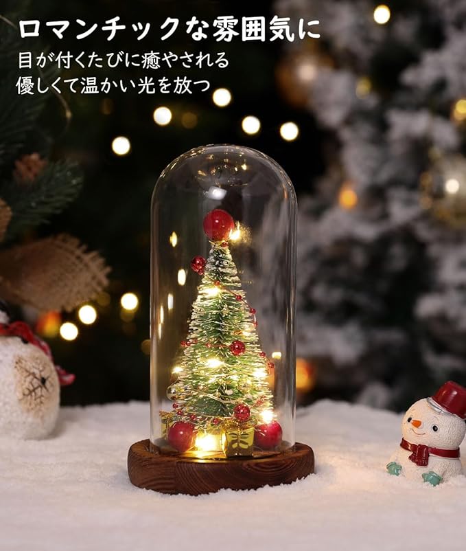 クリスマスツリー ガラスドーム Lewondr ドームポット クリスマス飾り ミニクリスマスツリー 卓上ドームツリー お手入れ不要 長持ち LEDライト付き 飾りライト 部屋飾り インテリア 誕生日/入学/卒業/お祝い クリスマスプレゼント | etshop