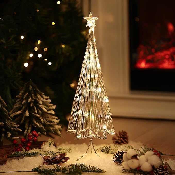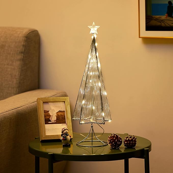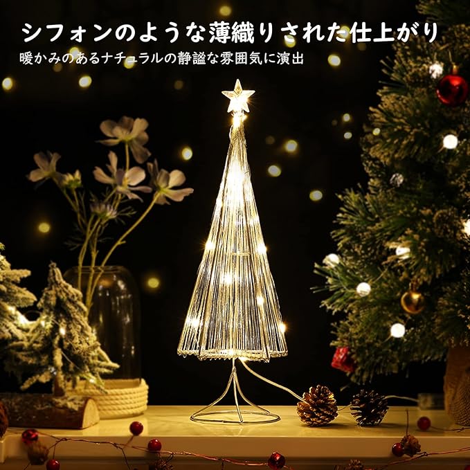 Lewondr クリスマスツリー 卓上ミニクリスマスツリー クリスマス飾り テデスクライト デコレーションライト 置き型 LED内蔵 松ノ木モチーフ 飾りライト インテリア 電池&USB給電式 星オーナメントライト クリスマスライト 母の日/誕生日/祝日/ハロウィン お祝いプレゼント Silver | etshop