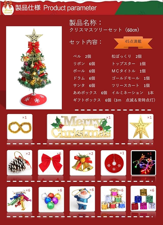 飾り(オーナメント)はついています。みんなでワイワイ飾るがツリーの醍醐味ですね!!お子様も大喜び!!