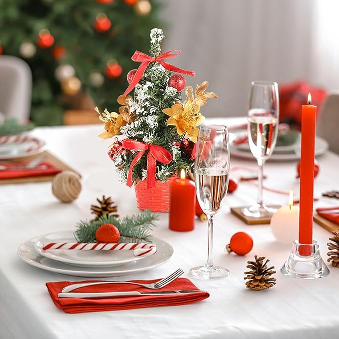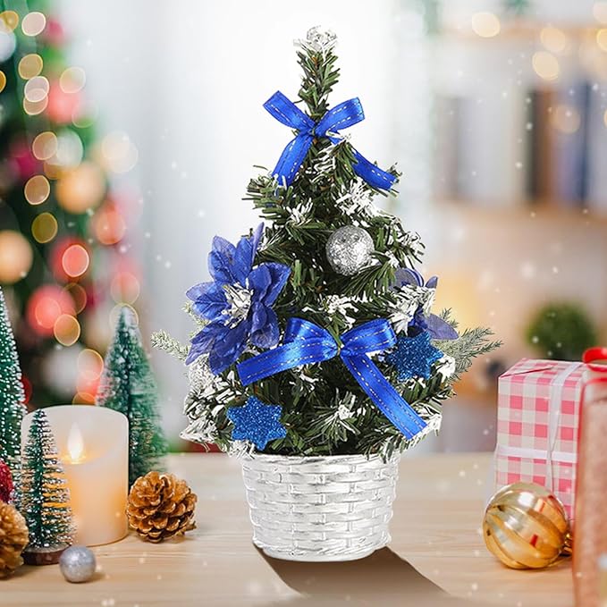 「綺麗なクリスマス飾り」:卓上クリスマスツリーはクリスマスをテーマし、赤と金と銀と青の4色がデザインされております。ミニクリスマスツリーには、カラーボールやリボン、ギフトボックス、リボン、星、造花などの飾りがたくさんついていて、可愛いです。もちろん、ご自身の好みに合わせて、装飾を追加する DIY 可能もあります。