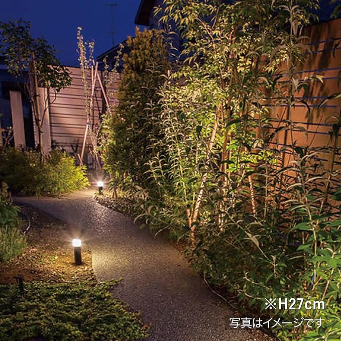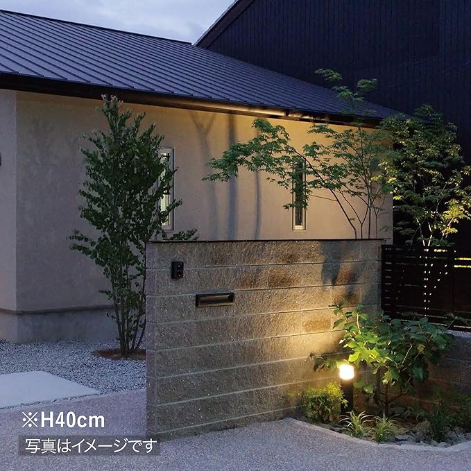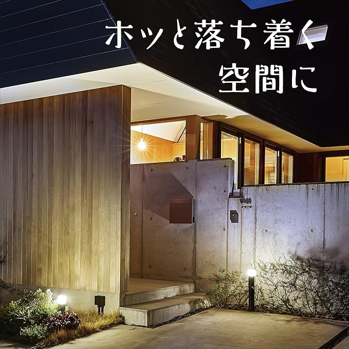 「間のひかり」は、その高さ(**約74cm**)を持つポール形状を活かし、**植栽の間やアプローチ沿い、デッキの縁**などに設置することで、光のラインを作り出し、夜の空間に**リズムと奥行き**を与える中景照明に特化しています。ライト1台あたりLEDを1球搭載し、温かみのある**電球色(2700K)**の光を放ちます。この光が、夜の庭全体にメリハリをつけ、ワンランク上の洗練された景観を作り出します。