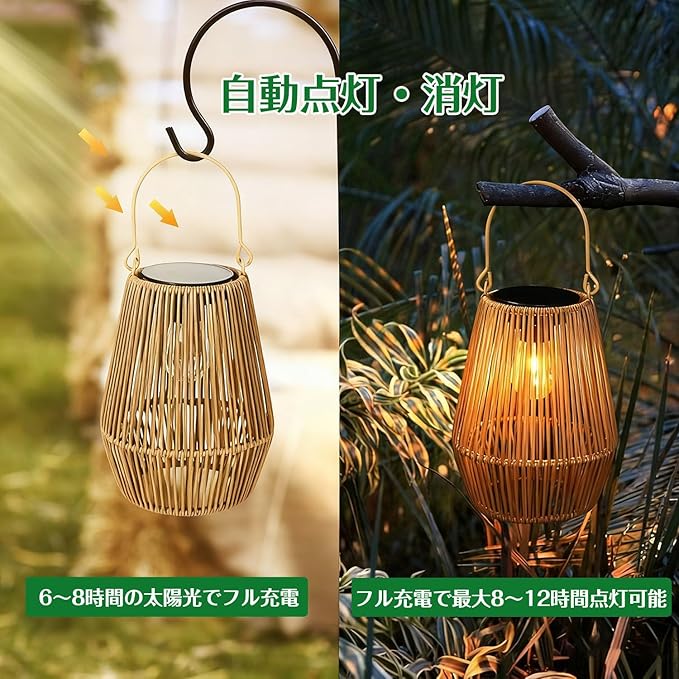 【ガーデニングにぴったり】ガーデン、玄関先、ベランダ、庭、キャンプなど、どんな場所でも屋外の照明としてぴったりです。わずか300gの軽量設計で木の枝などに吊り下げれれます。夜の庭も明るくておしゃれになります。