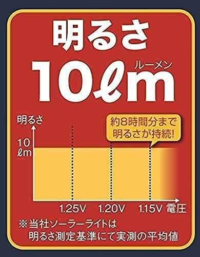 【仕様】明るさ:10lm調節可、光源:LED、多結晶ソーラーパネル、電源:充電池、点灯保持時間:フル充電後約8時間。内蔵充電池:ニッケル水素充電池単四形(1.2V、600mAh)、外形寸法:ライトヘッド直径 69㎜ 全体高さ319㎜