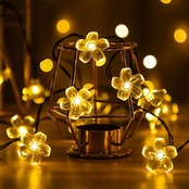 ストリングライト ソーラー ライト おしゃれ【2025進化 20時間以上点灯・高性能リチウム電池&インジケーター搭載】イルミネーションライト ガーデンライト 50LED電球 7M 桜の花 8モード IP65防水 キャンプ 夜間自動点灯 クリスマス/ハロウィン/パーティー/バレンタインデー/新年/祝日/結婚式/誕生日/学園祭屋外/室外/室内/庭対応 飾りライト (暖色) | etshop
