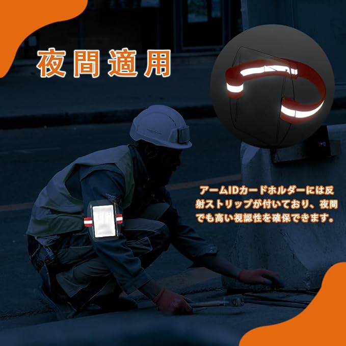 【反射ストリップで夜間の安全性を強化】アームIDカードホルダーには反射ストリップが付いており、夜間のランニングやライディング、建設現場での作業時でも高い視認性を確保できます。