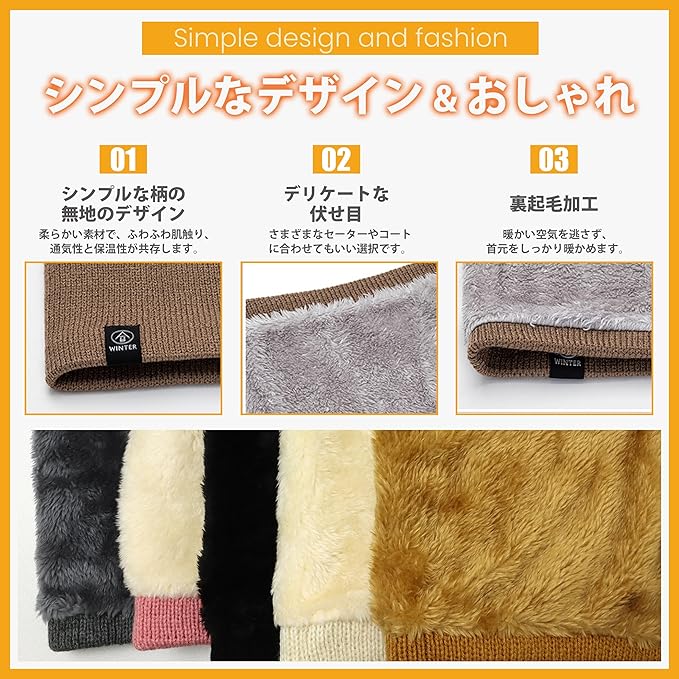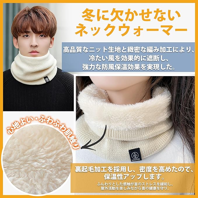 【360 極めた暖かさ&あったか裏起毛】表地にはニット素材、裏地にはボア素材を使用した360 全方位防寒保温のネックウォーマーです。360 首をかばって耳までもしっかり保護していっそう保温効果を高めて、保温性と防寒性と防風性を兼ね備えた着け心地のよいネックウォーマーです。装着する際に裏のボアが見えるデザインで、おしゃれながら保温効果も提供します。寒い日に大変重宝し、秋冬のアウトドアスポーツに最適なネックウォーマーです。