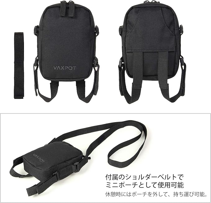 休憩時などには、取り外してショルダーポーチとして持ち運びが可能。