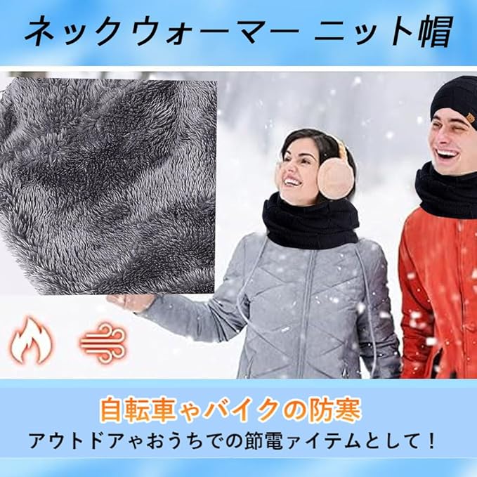 【優れた耐寒性・保温強化】分厚いウールニット構造が温かさをキープ。柔らかなフランネル裏地が心地よい着け心地!強化された耐寒性と保温性!このメンズ&レディース用ネックウォーマーは、おしゃれで暖かく、高い伸縮性で肌に優しい。特殊な編み構造が優れた断熱効果を発揮し、頭部、耳、首元を冷たい風から360度しっかりガード。