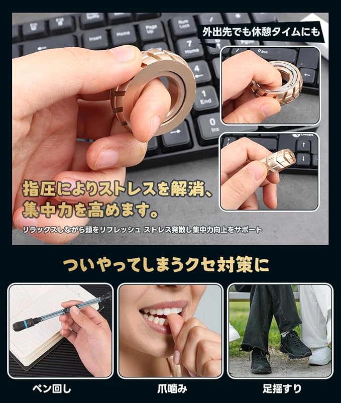 フィジェットスライダー フィジェット フィジェットトイ 指輪 おもちゃ 暇つぶしストレス発散グッズ 大人 デスクおもちゃ ギフト ストレス解消 クリスマス プレゼント アルミ ゴールド (ブラック) | etshop
