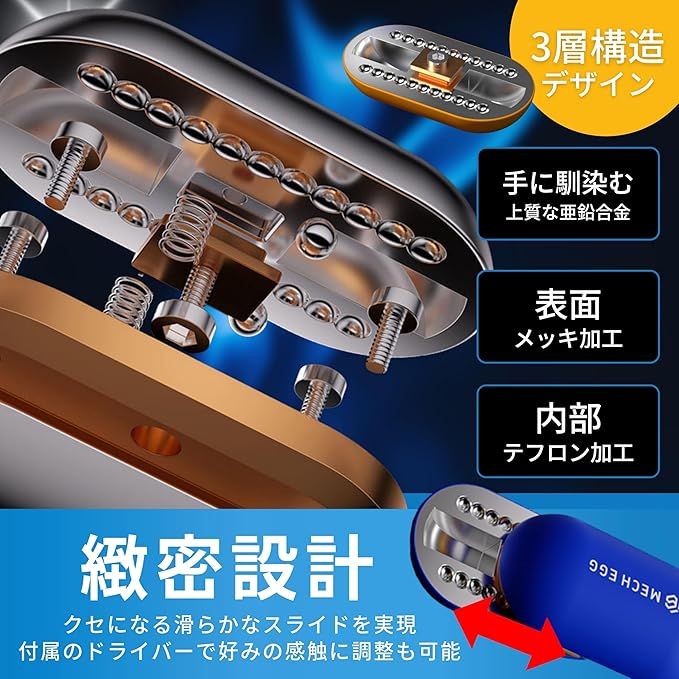 贈り物にも最適 収納ケース付きで、大切な方への贈り物としても最適です。誕生日やクリスマス、記念日など特別なイベントにぴったりで、幅広く喜ばれるストレス解消アイテムです。さらにドライバーが付属しており、個人の好みに合わせた調整が可能。【商品仕様】サイズ本体:約4.2㎝ 2.25、ケース約8㎝ 8 3.5、材質:合金、重量:60g【選べるカラー】イエロー/ブルー/シルバー※対象年齢6歳以上