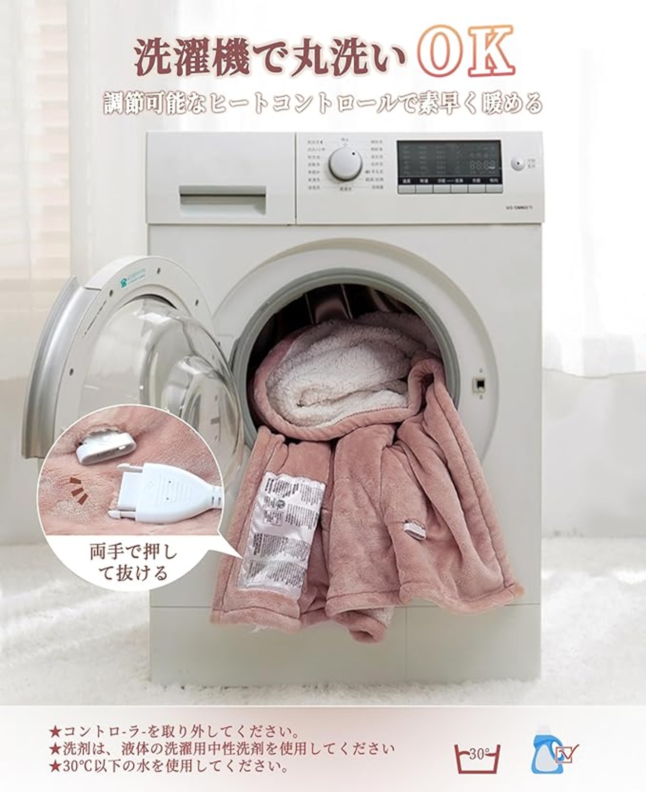 【お手入れ方法】:電気ひざ掛け洗濯機で洗えます。GOTCOZYのでんき毛布耐久性に優れ、お手入れも簡単です。洗濯後は、コードが絡まないように平らにしてください。