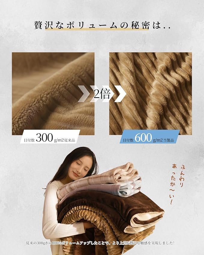 【SNSで話題沸騰・うるおいタッチでしっとり温もる、肌に優しい電気毛布】こだわりの「フランネル素材」が織りなす極上のくつろぎ空間。ふんわりと長めに仕立てた毛足が、しなやかでしっとりとした肌触りを実現。ふわふわの軽さに優れ、電気がなくても触れるだけで温もりを感じられます。従来素材よりも厚みを増した構造が、全身を包み込むようなしっかりとした保温効果を発揮。 ✓ 1〜6段階の細やかな温度調節機能に加え、最長10時間の切タイマー機能を搭載。低温設定で朝まで安心してお使いいただけます。電気⽑布なら簡単に持ち運べて、お家の中でどこでも暖をとることが可能に。 ✓ 部屋の雰囲気に馴染みやすいデザイン、ソファ、ベッド、デスクなど、電気膝掛け、電気敷き毛布、電気掛け毛布としてもマルチに大活躍!