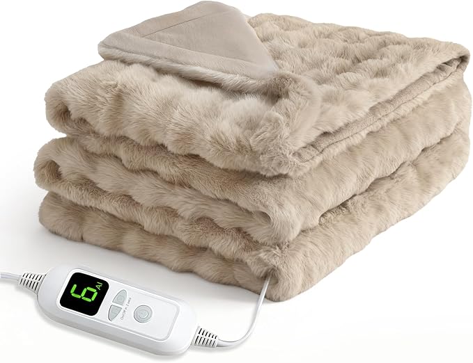 電気毛布 膝掛け 肩掛け 【2025 AI自動温度調整 表面ラビットファー調+裏面フランネル】 掛け 敷き 洗える 12時間タイマー付 6段階温度調整可 電気ブランケット 省エネ 自動オフ PSE認証済 速暖 厚手 ダニ退治 120 60cm | etshop