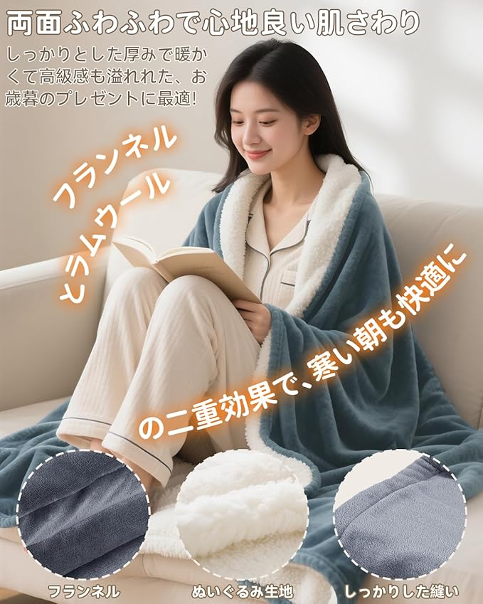 【高級両面使用可能仕様で極上の温もり電気毛布が登場】極上ふわふわ両面使える電気ひざ掛けは表面が吸湿発熱に優れた高級フランネル、裏面は保温性抜群のふわふわ素材を採用され、まるで高級ブランケットのような肌触りで、寒い日も「あ~気持ちいい」とつぶやきたくなる極上温かさ!従来品より30%アップの保温性!ふかふか素材が体温を逃さず、電気をつけていない時でも「これだけで十分暖かい」と驚きの声続出し、電気代節約にも嬉しい設計です。冬はもちろん、夏のオフィスや寝室の冷房対策としても大人気。「1年中使えるからお得」一年中使えるアイテムです。その上、ヒーター部分は炭素繊維加熱線を採用、優れた導電性や導熱性を実現し、電源オンにすると、すぐじんわりと暖かくなります。布団に入った瞬間、温かさが身体を包み込み、あなたの寒さをジャストフィットします!それに床に座り、本体をひざや腰にかけたり、ソファーに敷いてし使用たりするなどいろんな場合で大活躍!冬で手足が冷えて寝つきが悪くなったり、寒い夜間で起きてしまったり、苦労している方に本店のあったかぽかぽかの電気毛布をおオススメ。140 80cm