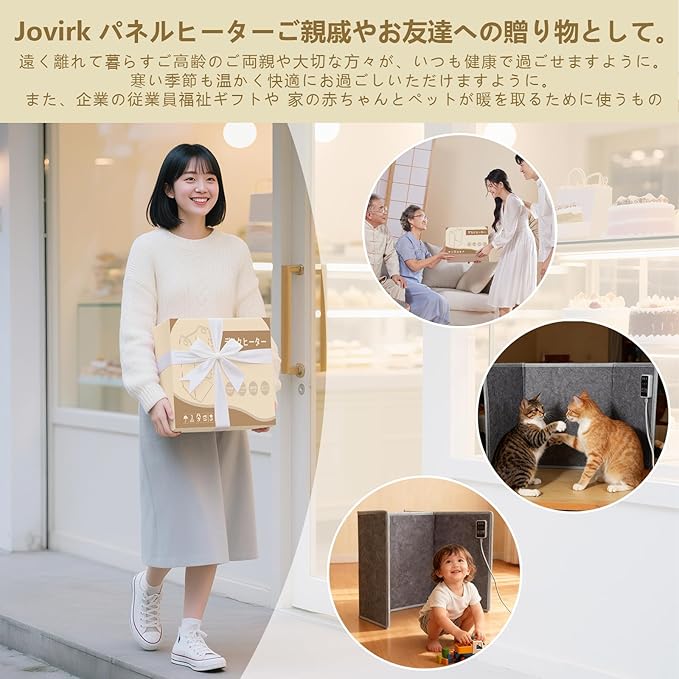 【Jovirkパネルヒーター の6つのメリット】私たちパネルヒーター 足元安全性と快適性を兼ね備えた最新モデルです。万が一転倒しても自動で運転を停止し、無音・無臭設計で静かに暖まります。さらに、過熱防止機能と温度上昇時の自動停止機能を搭載し、安心してお使いいただけます。2時間後には自動で電源がオフになる省エネ設計で、従来品より温度効率が約50%アップ、消費電力は約30%カット。柔らかい毛布をプレゼントとして付属しており、併用することで保温効果がさらに向上します。日本語取扱説明書付き、PSE認証済みで、1年間の製品保証も付いています。