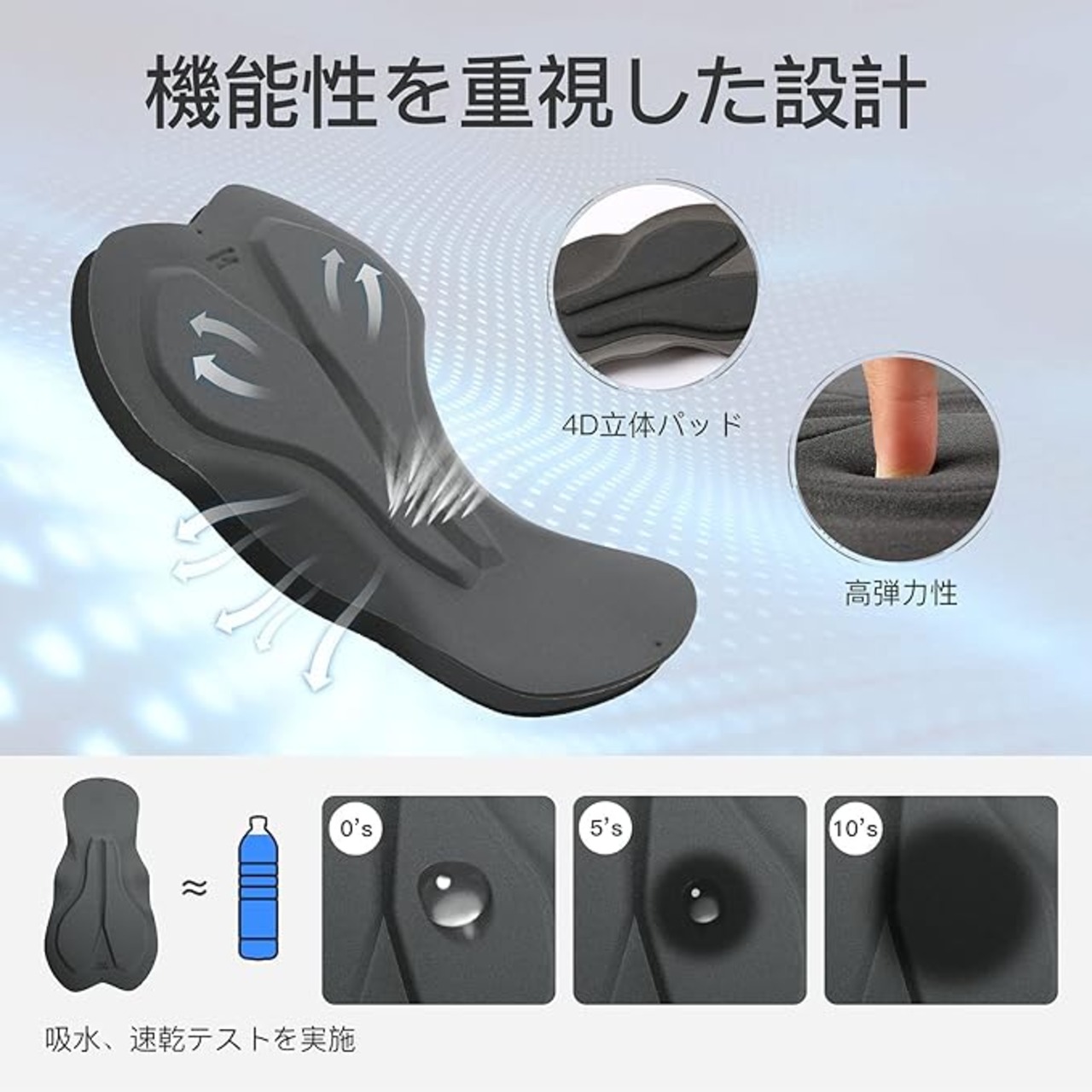 【3Dゲルパッド】スポンジパッドは緩衝層が加工されたので、 長時間の走行でも衝撃を吸収してお尻の痛みが軽減されます。