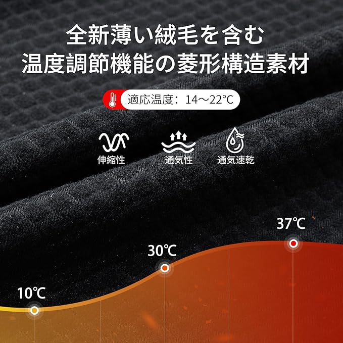 【通気性裏起毛素材】外部は防風生地、裏地はは暖かい裏起毛素材で適度な保温力を持ち、素早く汗を吸水拡散して素肌を常に乾いた状態に保ちます。