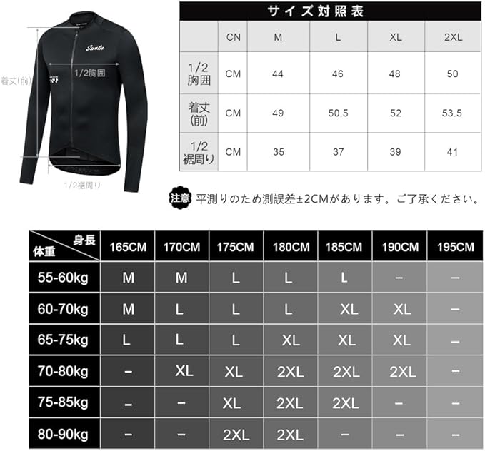 【伸縮性】3D立体縫製で、窮屈な束縛感が解消されます。前傾姿勢や腕を前に伸ばす自転車を考慮し、背中を長くなって、肩周りをストレッチに作られています。この商品はスリムフィットで、大きめのサイズをおすすめします。