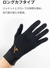 裏起毛生地を使用し、薄手ながら高い保温性と着け心地の良さを兼ね備えた、ロングカフタイプのインナーグローブ。グローブとジャケットの隙間を覆い、走行風の侵入を軽減。ライディンググローブへの汗や皮脂等の付着を軽減し、清潔な状態に保ちます。