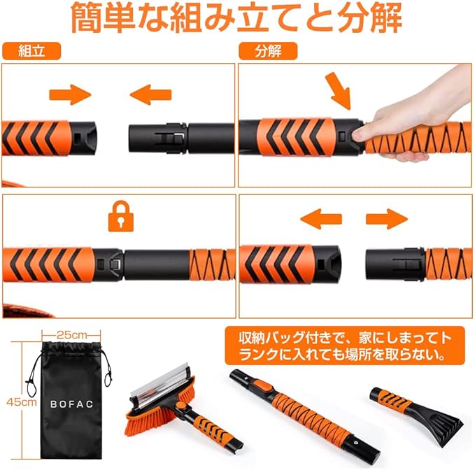 BOFAC 車用スノーブラシ 除雪ほうき 87-107cm 伸縮式雪ブラシ アイススクレーパー付き フォームグリップ 車 トラック SUV用 除雪 雪かき 雪対策 ベタ雪用 収納袋付き | etshop