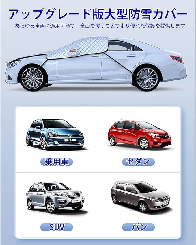 OSKEE 車用凍結防止カバー フロントガラスカバー (6本ストラップ固定) 車 霜除けカバー フロントカバー 強風対策 雪対策 霜よけ 側窓とバックミラー保護 軽自動車 小型SUV セダンに適用 | etshop