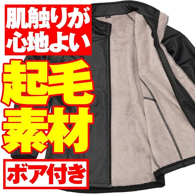 ボアフリース起毛生地で肌触りがよく、走行中の冷たい風を防風生地がガッチリガード。