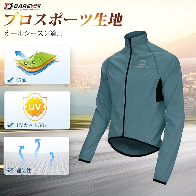 [Darevie] サイクルジャケット サイクル ウインドブレーカー 長袖 春夏秋冬用 メンズ [防風&撥水&UVカット] 自転車 ロードバイク服 アウトドアウェア スポーツ 収納便利バックポケット付き 通気 反射材 薄手 DVJ002 | etshop
