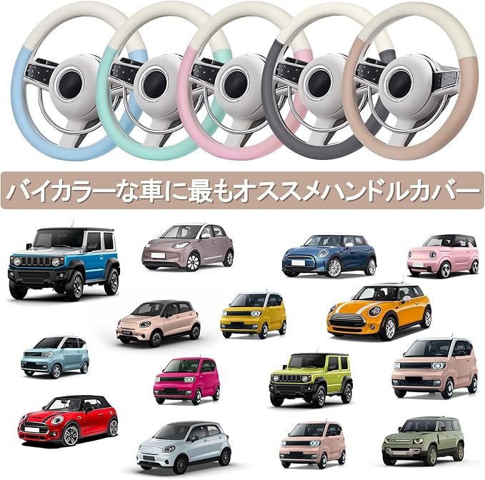 ZATOOTO ハンドルカバー バイカラー Sサイズ かわいい ステアリングカバー 軽自動車 おしゃれ ツートンカラー 普通車 適合多車種 タント ハスラー キャンバス ベージュ LY172-BE | etshop