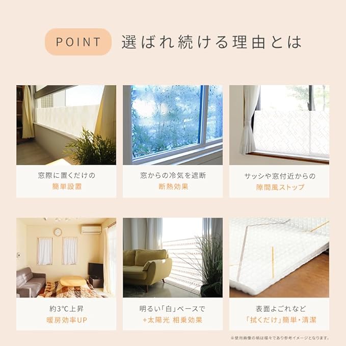 ●窓際に立てるだけで、冷気を遮断、隙間風をストップ●暖房費の節約に貢献●折畳み式で設置も収納も簡単