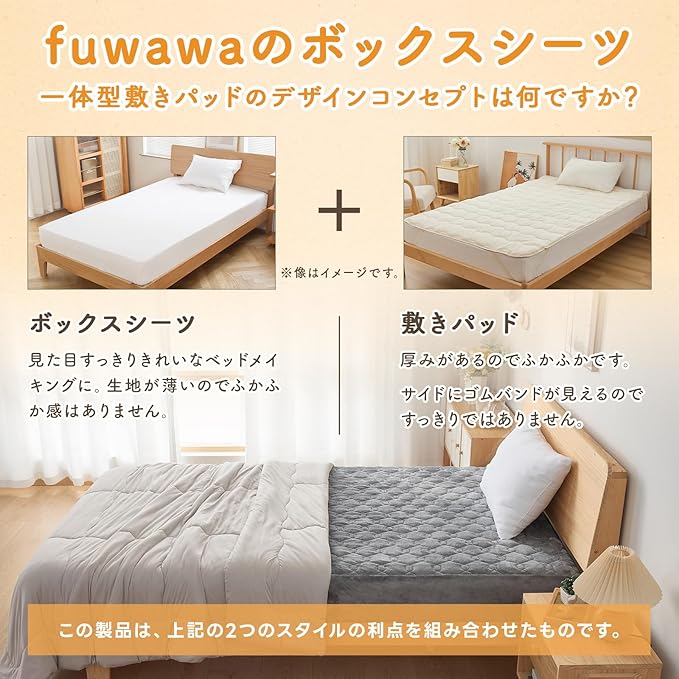 【敷きパッド ボックスシーツの2WAY仕様|マルチユース対応】布団の上に敷く「敷きパッド」としても、マットレスを包み込む「ボックスシーツ」としても使用可能(※防水仕様ではありません)。全周ゴムバンド付きで、厚さ3〜25cmのマットレスに対応し、ズレにくい設計です。季節や寝具に合わせて使い分けできる万能タイプです。