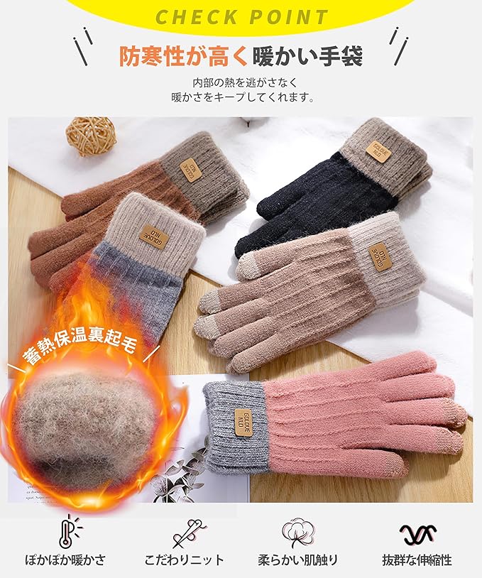 [YUMISS] 手袋 レディース 冬 防寒 【ふわふわ裏起毛・二層ニット保温・超高い防風性】【スマホ対応便利・可愛くて着心地良い】グローブ 柔らかい 保温 暖かい おしゃれ 自転車 通勤 通学 てぶくろ | etshop