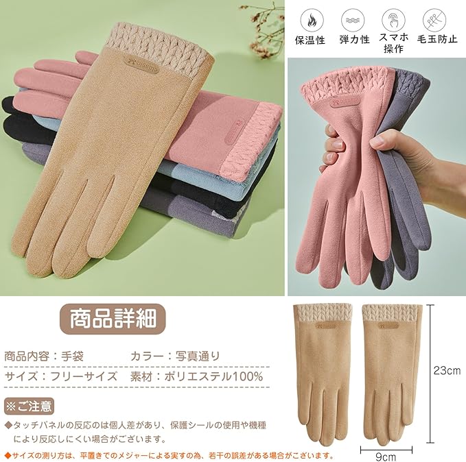 【仕様】サイズ:フリーサイズ(手袋の全長が23cm、中指の長さが9cm)メイン素材: スウェード生地・スエード