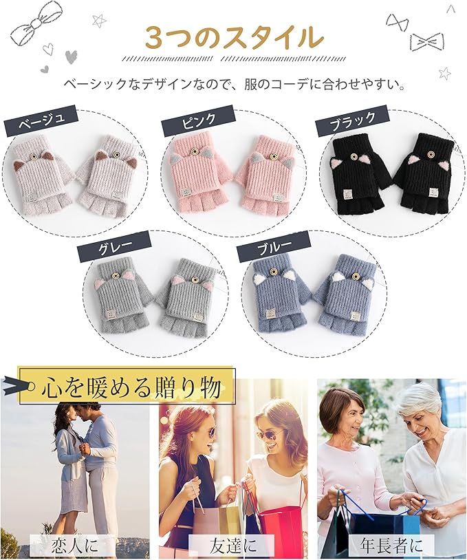 【かわいいデザイン】 手袋は非常に快適で暖かく、優れた弾力性を持ち、長時間着用しても形が崩れません! 手袋 レディースはミトン部分のデザイン、かわいいイメージ、絶妙な技量です。鹿の角のラベルデザイン手袋は、より個性的で、より美しく、色の値がオンラインです。3つのスタイル手袋はすべてシンプルでスタイリッシュなボタンデザインで、着脱が簡単で、どんな服装にも合わせられます! おしゃれ感たっぷり!
