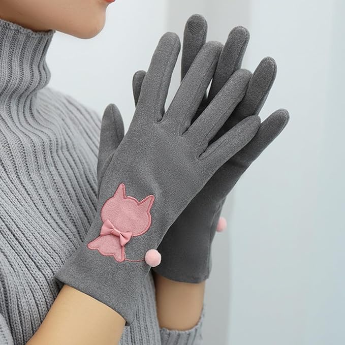 [Morices] レディース 手袋、可愛い 猫の飾り 裏起毛 グローブ 女性向け 防風 暖かい 防寒手袋、柔らかい スマホ対応 冬の手袋 アウトドア 登山 通勤 自転車 日常の運転 冬の必需品 | etshop