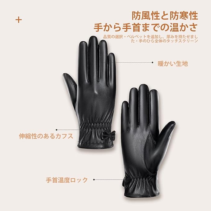 [LEZOOY] 革手袋 レディース 羊革 レザーグローブ 手袋 冬 防寒 防風 保温 裏起毛 柔らかい ちょうむすび付き手袋 女性 冬 タッチパネル対応 暖かい 通勤 通学 自転車 運転 ワンサイズ | etshop