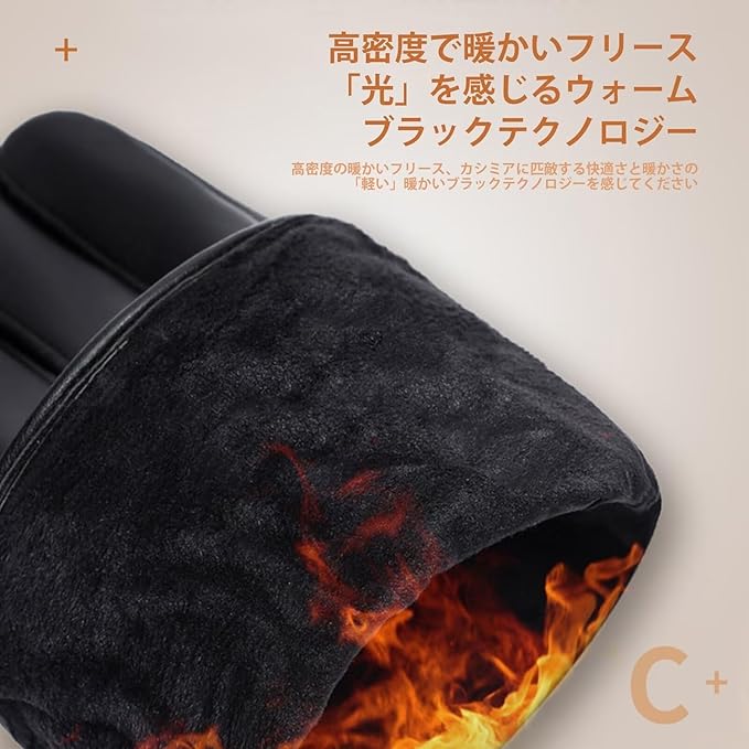 【防寒・保温性】表面は柔らかな羊革で、内側には起毛裏地を採用しています。保温効果が高く、冷たい風から手を守り、暖かさを長時間キープします。