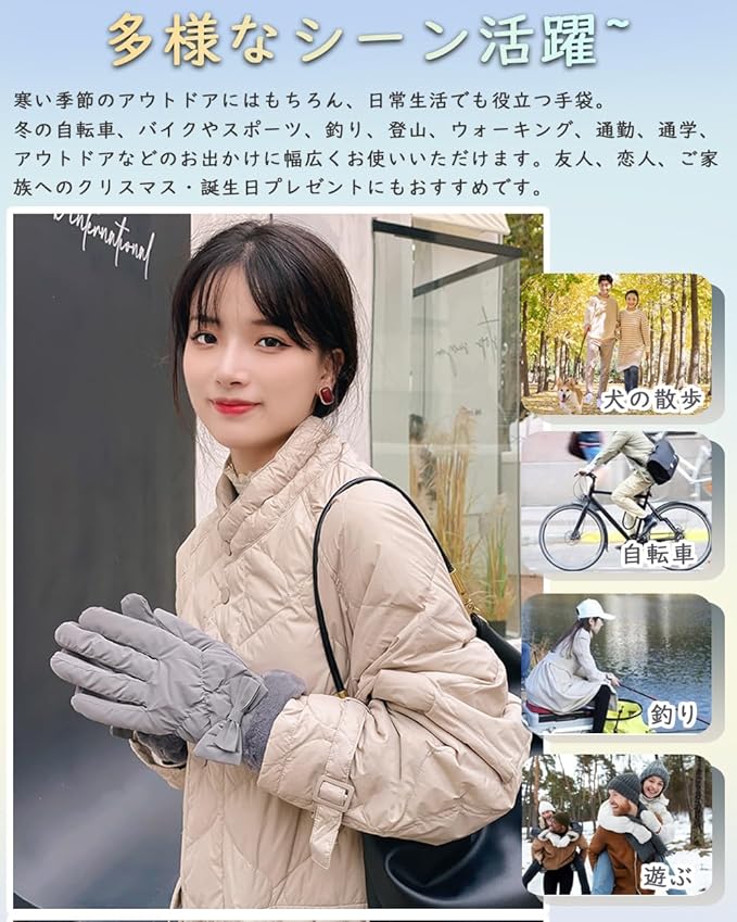 【幅広いシーンで使える】寒い季節のアウトドアにはもちろん、日常生活でも役立つ手袋。冬の自転車、バイクやスポーツ、釣り、登山、ウォーキング、通勤、通学、アウトドアなどのお出かけに幅広くお使いいただけます。友人、恋人、ご家族へのクリスマス・誕生日プレゼントにもおすすめです。