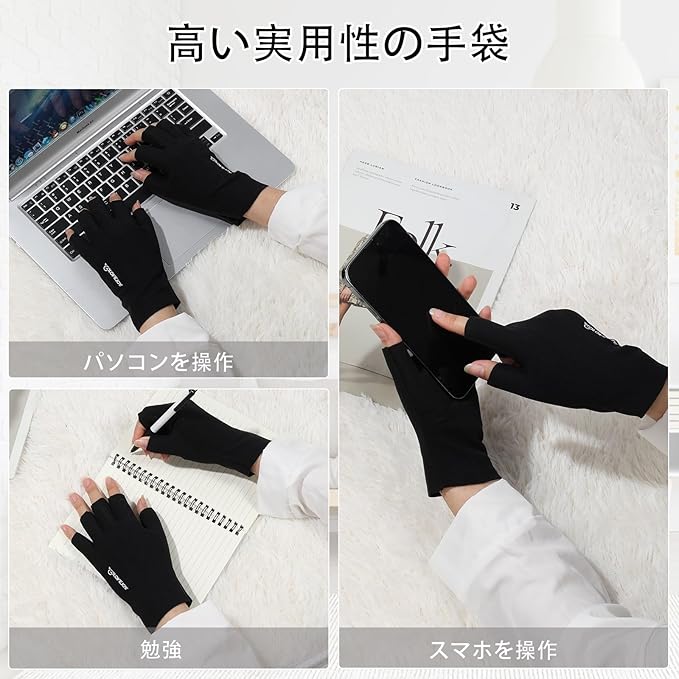 【指なしデザインの手袋】半指設計を採用し、自由な操作が便利です。手が冷たいときは、さっと着用することができます。スマホやパソコンなどを楽に操作できます。勉強中でも簡単に字を書くことができます。使いやすいです。