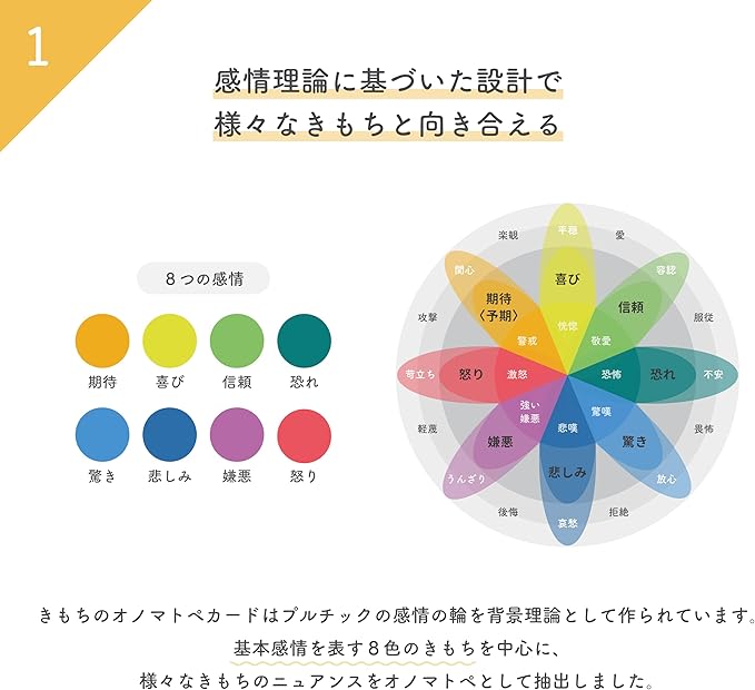 ①感情理論に基づいた設計で様々なきもちと向き合える。