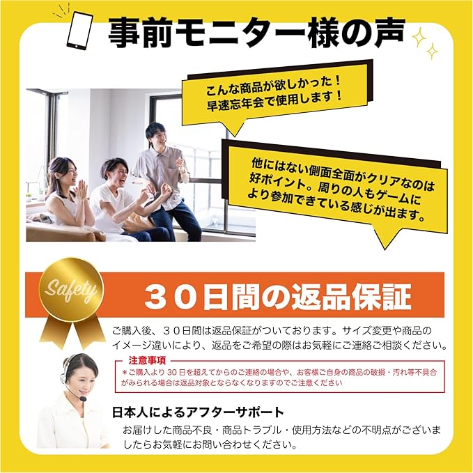 ✅ 大人数で催されるパーティーやコンパ、忘年会や新年会といった出し物が必須な時に大活躍間違いなしの側面4面スケルトンボックスです♪会場にいるみんなとドキドキを交友したい、イベントで使えるゲームを探しているという方にピッタリ!