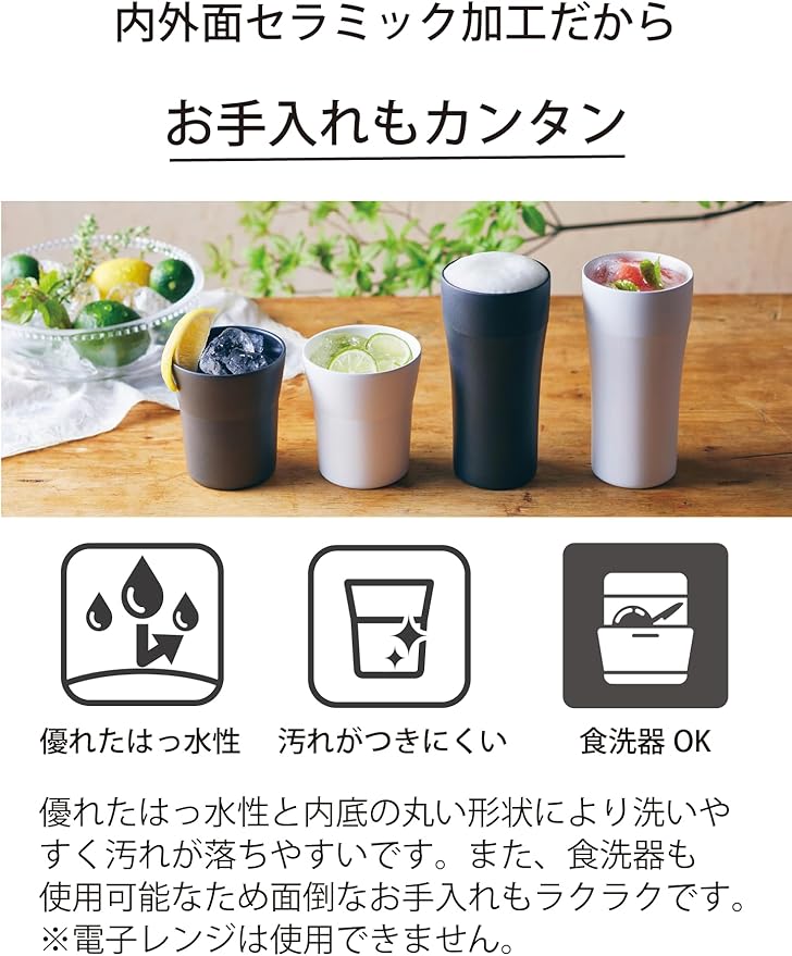 ●内外面セラミック加工で金属臭がせず、ドリンク本来の香りや味わいを楽しめる ※金属臭の感じ方は個人差がある