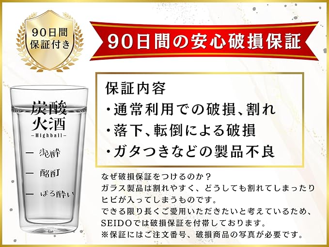SEIDO ハイボール グラス 炭酸火酒ver2.0 二重構造 口元一層 タンブラー ダブルウォール メモリ付き 耐熱ガラス 保温保冷 食洗器対応 電子レンジ対応 結露しにくい アル中カラカラ 340ml 単品 | etshop